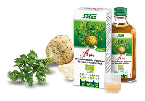 El apio contribuye a la digestión y diuresis normales. Este jugo procede de cultivo ecológico. El jugo se obtiene por prensado de la planta fresca en su óptimo punto de maduración, por lo que ofrece el espectro completo de principios tal y como se encuentran en la planta fresca, sin alteración alguna.