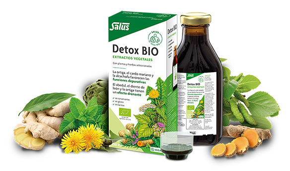 Detox BIO es un complemento alimenticio a base de extractos vegetales. Su fórmula incluye una cuidada selección de plantas como ortiga, cardo mariano, alcachofa, abedul y diente de león. La vitamina C natural de la acerola protege las células frente al daño oxidativo. Este producto está especialmente indicado durante los cambios de estación. Todas las plantas y frutas provienen de agricultura ecológica.