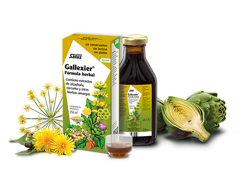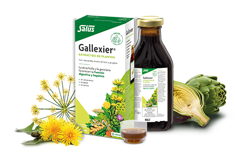 Gallexier es un complemento alimenticio que contiene, además de alcachofa, diente de león y otras plantas amargas como la genciana y el jengibre.