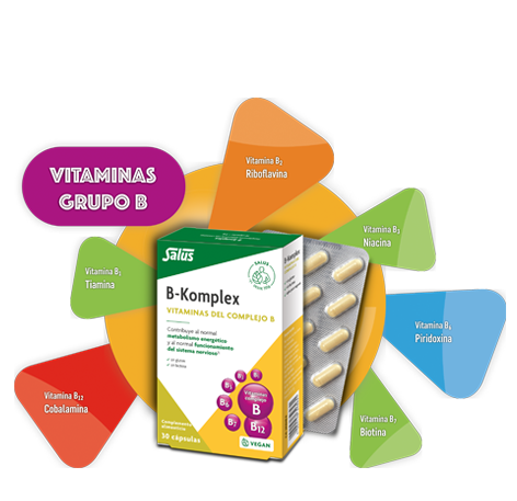 B-Komplex ofrece un apoyo en caso de una ingesta insuficiente en la dieta o de un aumento de la necesidad de vitaminas B1, B2, B6, B12, niacina, ácido pantoténico, biotina y ácido fólico.